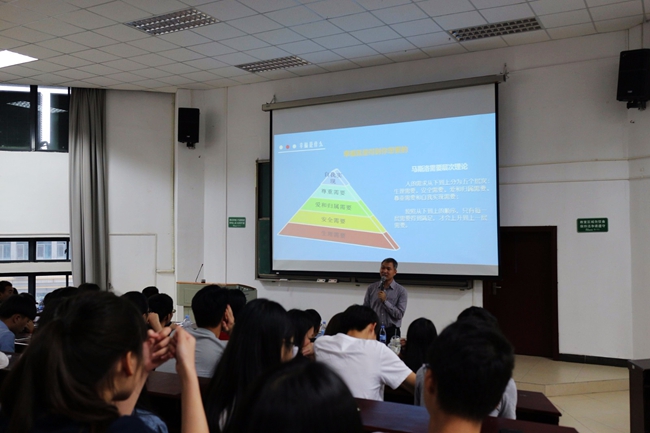 4月21日下午,我院“5?25心理健康节系列活动”之专题心理讲座在7B301顺利开展。此次讲座特邀了东莞市人民警察训练学校孙合龙副校长与同学们一起探寻幸福,我院近200名师生聆听了本次讲座。