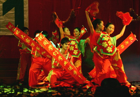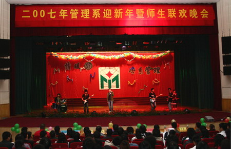 12月10日晚上,我院管理系在大礼堂举行2007年迎新年暨师生联欢晚会,以热情欢快的文艺节目,迎接新年的到来。院党委书记朱志德,党委副书记朱冰观看了晚会。