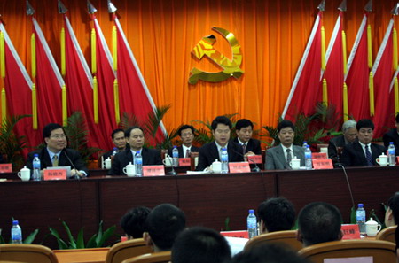 大会开幕式由杨晓西同志主持。下午3点,在庄严的国歌声中,中国共产党东莞理工学院第一次代表大会隆重开幕。中共东莞市委书记、市人大常委会主任刘志庚,广东省委组织部副厅级组织员万东明同志、广东省教育工委副书记谭泽中同志,中共东莞市委常委、组织部部长庞国梅同志,广东省委组织部干部五处何巨峰同志,中共东莞市直和机关工委书记苏群芳同志,广东省教育工委组织干部处副处长黄兆团同志,中共东莞市委组织部副部长陈柏南同志和我院领导杨晓西、王江水、黄碧莲、安少华、邹晓平、戴炳源等及全体党代表出席会议。东莞市委副书记、东莞理工学院临时党委书记刘树基同志作了党委工作报告。报告的题目是《加强党的建设 全面落实科学发展观 为建设有创新特色的名牌地方院校而努力奋斗》。