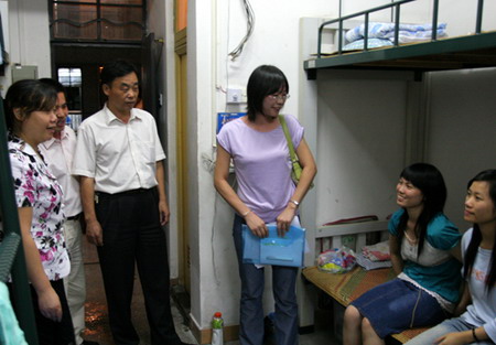9月17日晚上,学院党委书记朱志德、党委副书记朱冰与有关部门负责人一道来到学生公寓,察看新公寓各项设施的安装使用情况,询问新生对学院生活是否适应,并鼓励同学们要尽快适应大学生活,在学院这个大家庭里学会学习,学会做人,学会做事,争取在毕业的时候能交出一份满意的答卷,为社会做出自己的贡献。