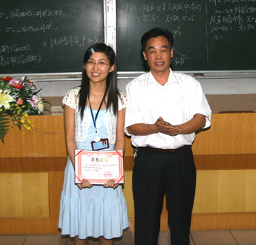 比赛进行6个多小时,产生一等奖1名,二等奖2名,三等奖3名。财经系张灿灿在讲授《复试记帐法》这一课题时,以严谨的教学态度、生动的教学语言、灵活的教学方法受到评委和同学们的一致好评,获评为一等奖,学院党委书记朱志德为她颁奖。社科系马莉、财经系鞠成晓获二等奖,文学与艺术系李玲玲、徐婷婷以及计算机与信息科学系马建华获三等奖,其余6名老师获优秀奖。
