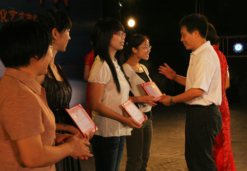 在科技文化艺术节期间,同学们创作了一大批优秀作品,涌现了许多先进集体和个人,其中有的作品还获得省、市的奖励和表彰。会议对卢彩玲等176位同学和管理系辩论队等100个集体,以及宋蜜蜜等185名工作积极分子进行了表彰。会上,学院还表彰奖励了我院建院以来获得全国、广东省比赛奖项及其学生,通报了本年度我院通过英语六级、专升本、考取研究生的学生名单,并为他们颁发了证书。