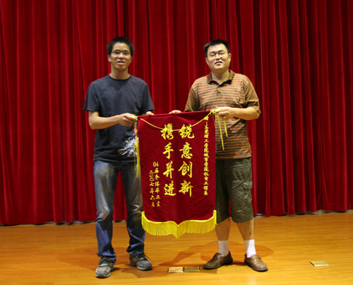 毕业生为了表达对良师益友的依依不舍之情和对新生活的向往,向母校送了山水画和锦旗以谢师恩。