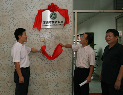 为向学院师生提供一个了解东莞、研究东莞的信息平台,城市学院图书信息中心筹建了“东莞市情资料室”。7月3日,东莞理工学院副院长、城市学院院长安少华教授和学术副院长程发良教授为市情资料室揭牌。