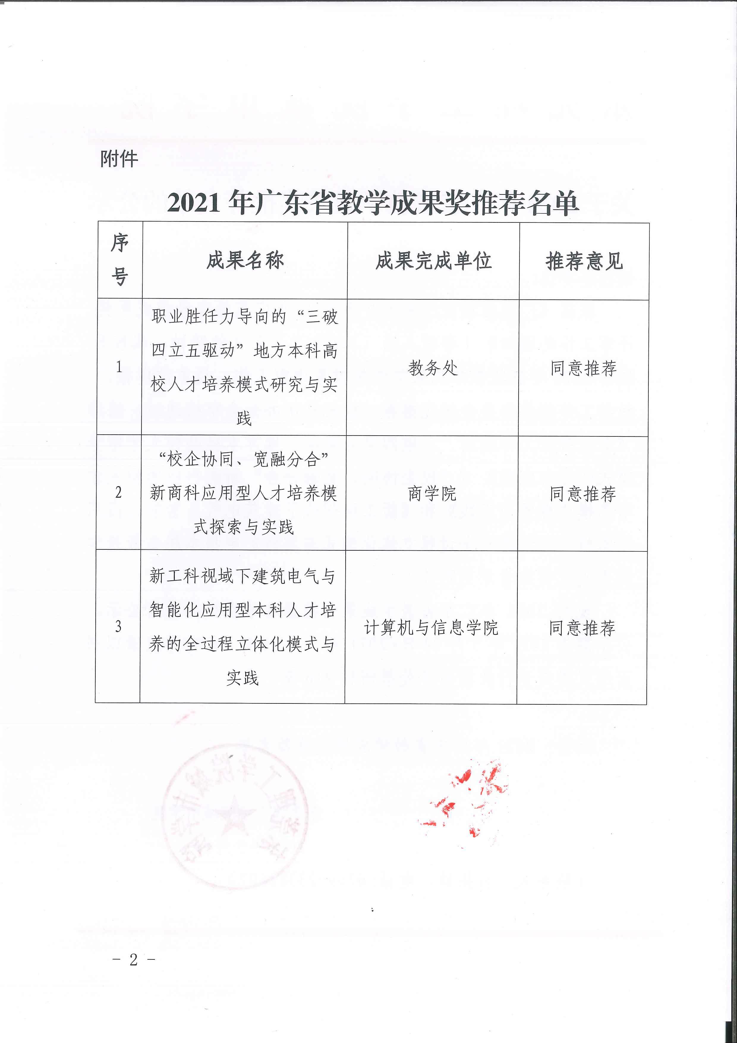 东莞理工学院城市学院关于2021年广东省教学成果奖推荐名单的公示