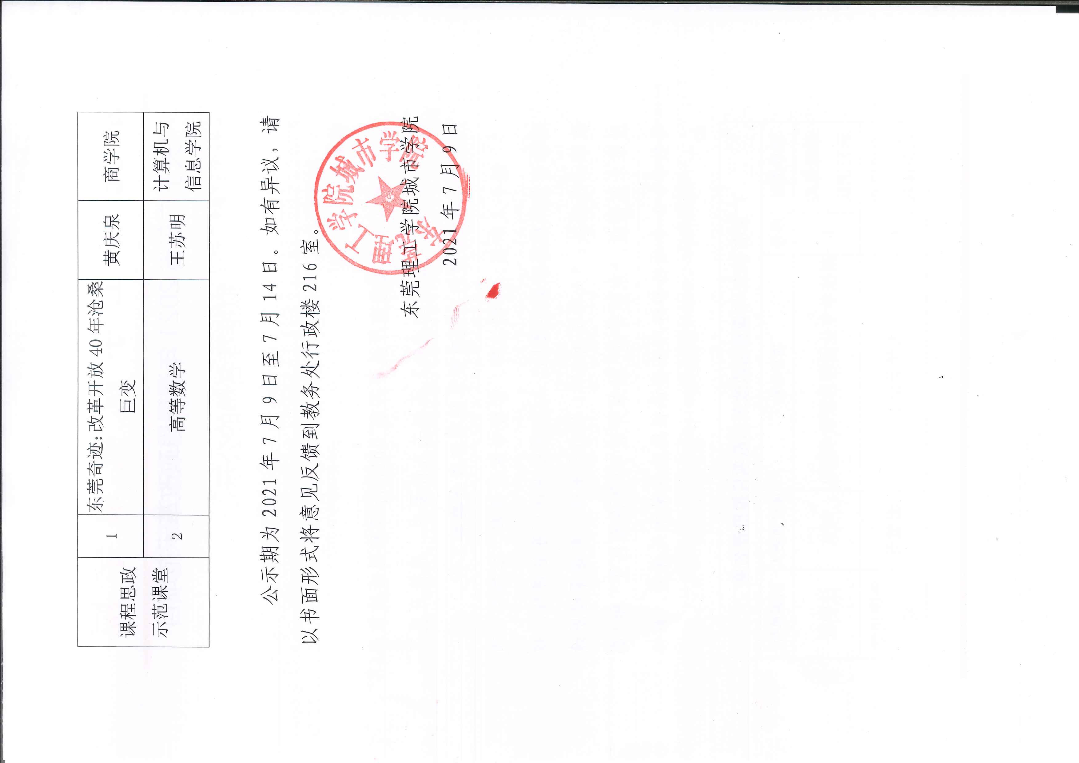 东莞理工学院城市学院关于广东省2021年课程思政改革示范项目拟推荐名单的公示