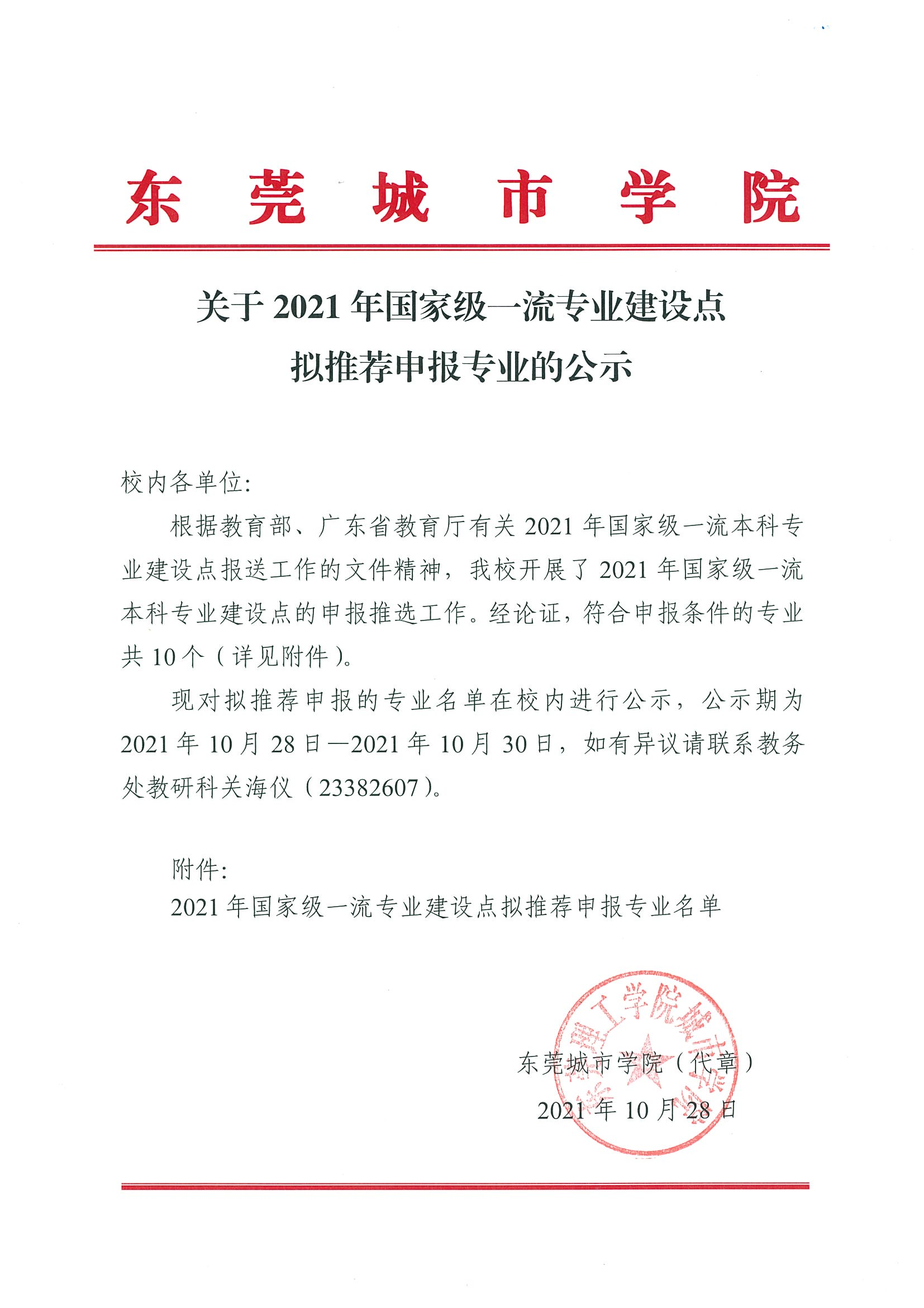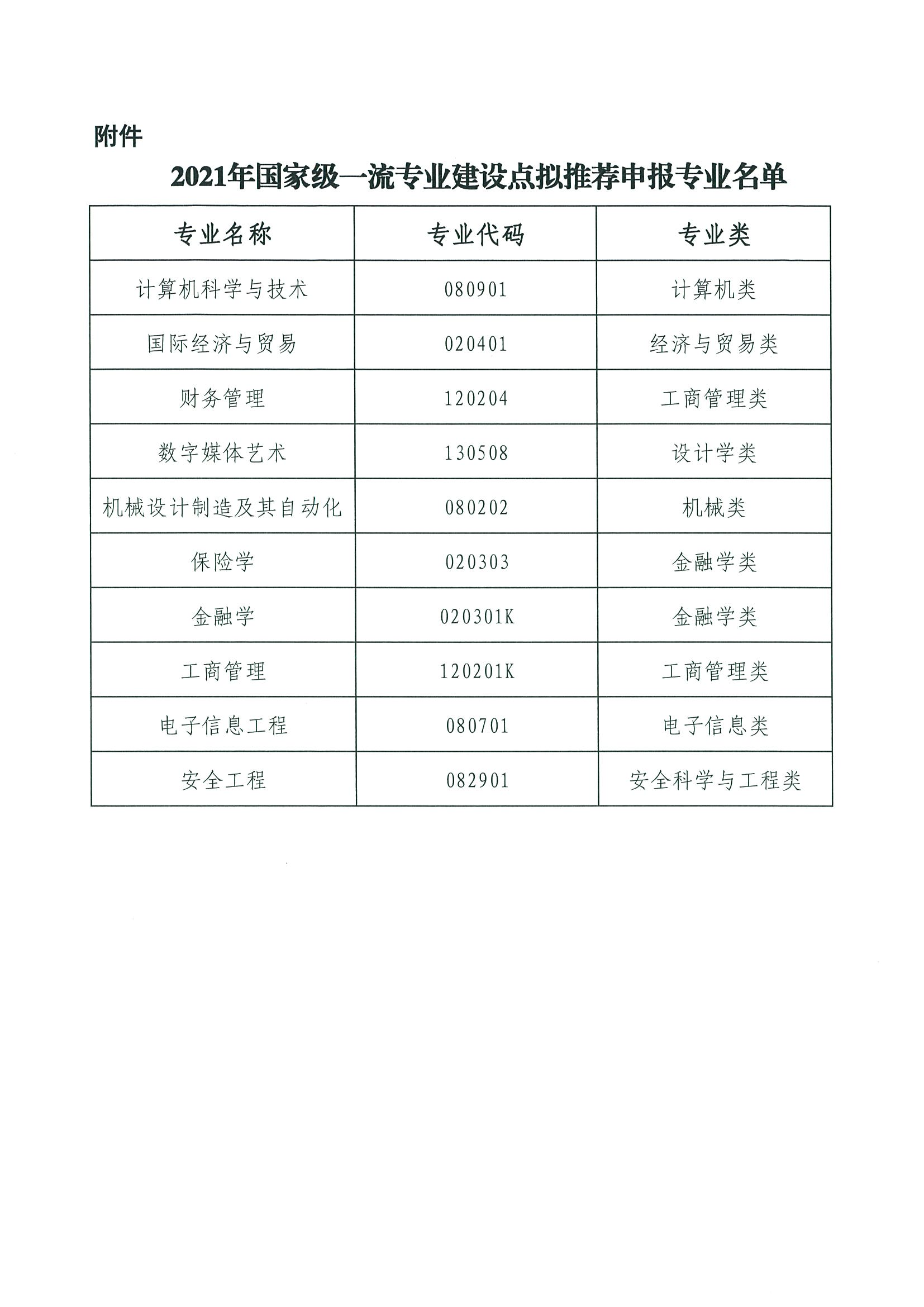 关于2021年国家级一流专业建设点拟推荐申报专业的公示