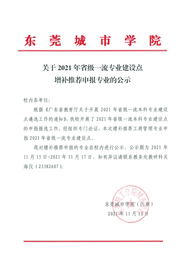 关于2021年省级一流专业建设点拟推荐申报专业的公示