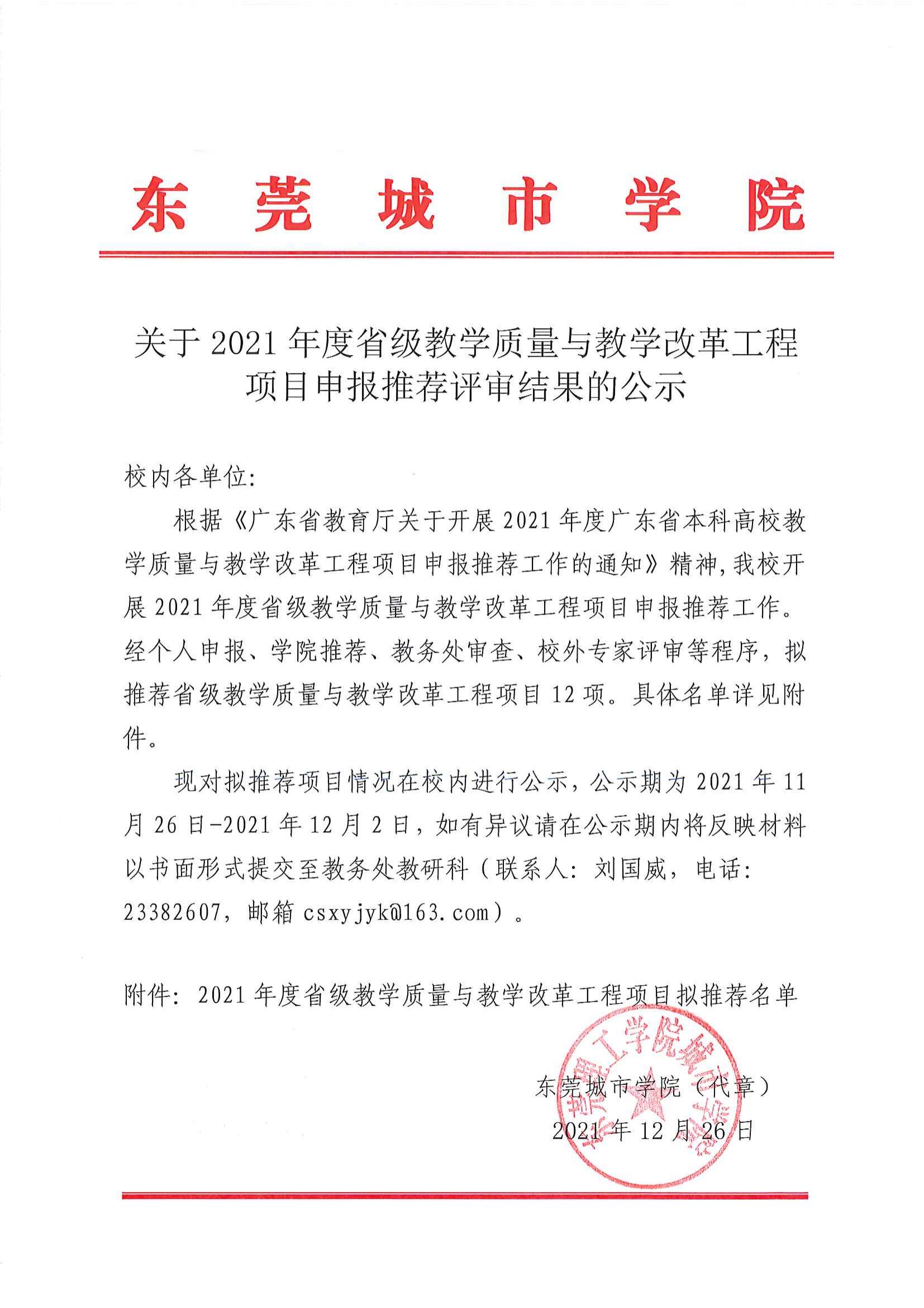 关于2021年度省级教改项目拟推荐项目的公示