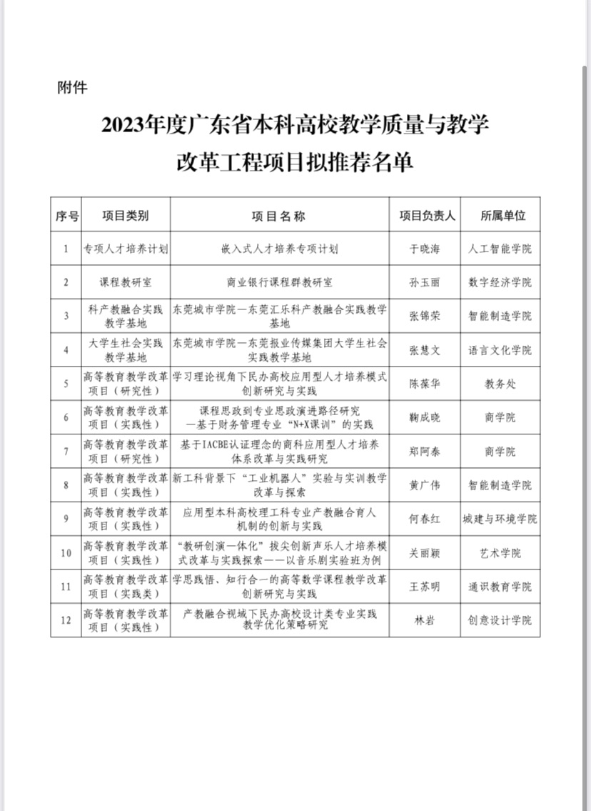 关于2023年度广东省本科高校教学质量与教学改革工程项目拟推荐名单的公示