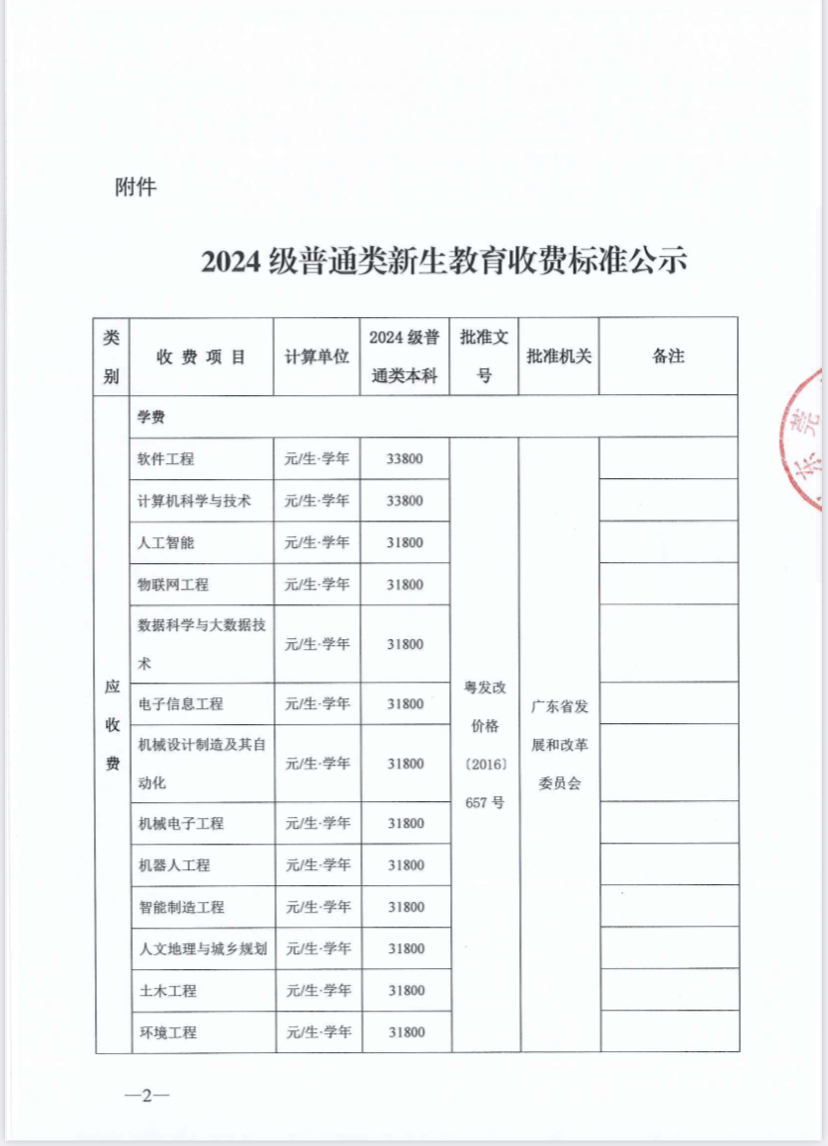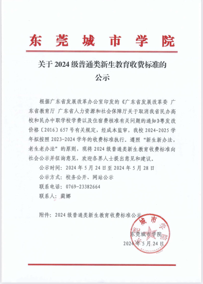 关于2024级普通类新生教育收费标准的公示