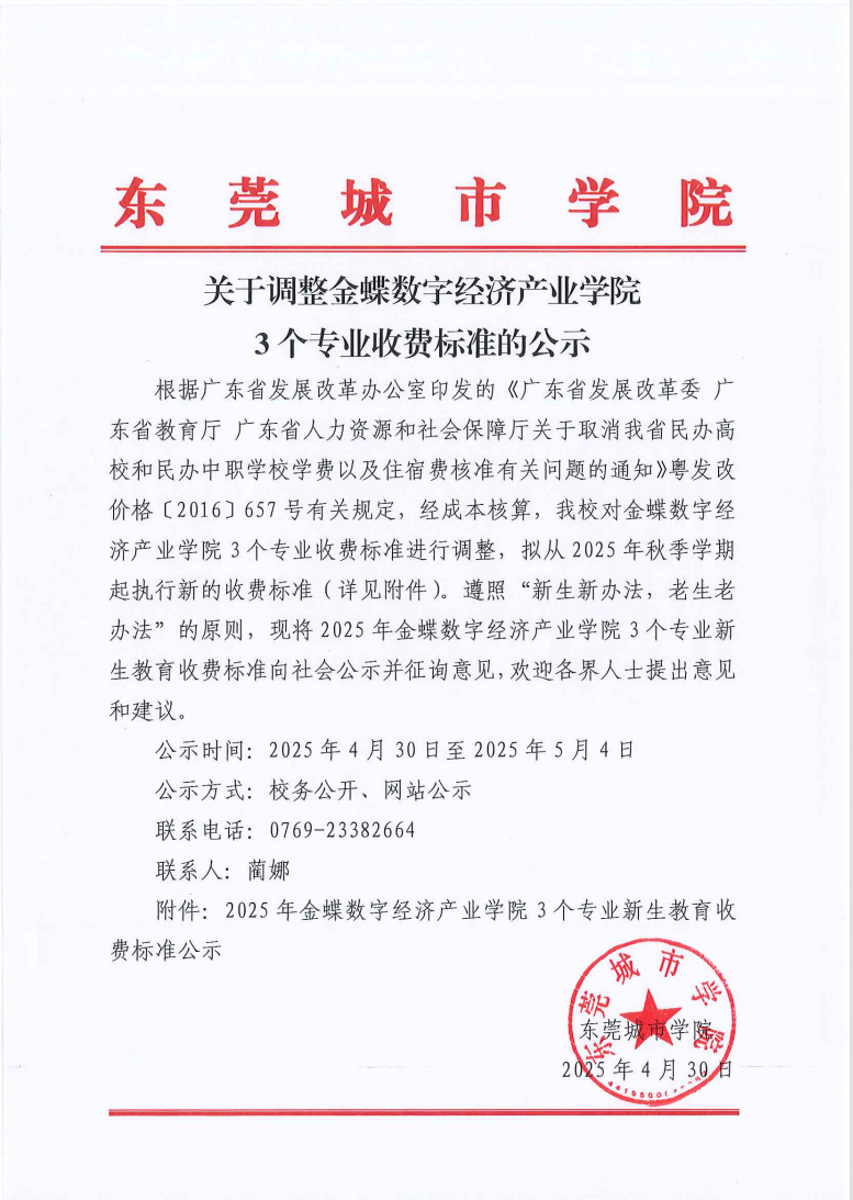 关于调整金蝶数字经济产业学院 3个专业收费标准的公示
