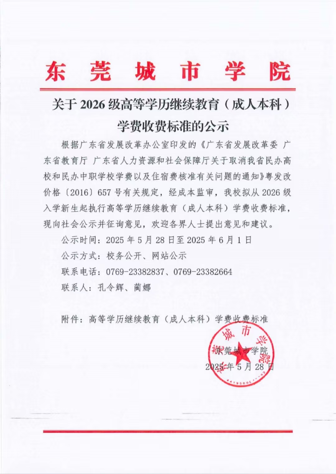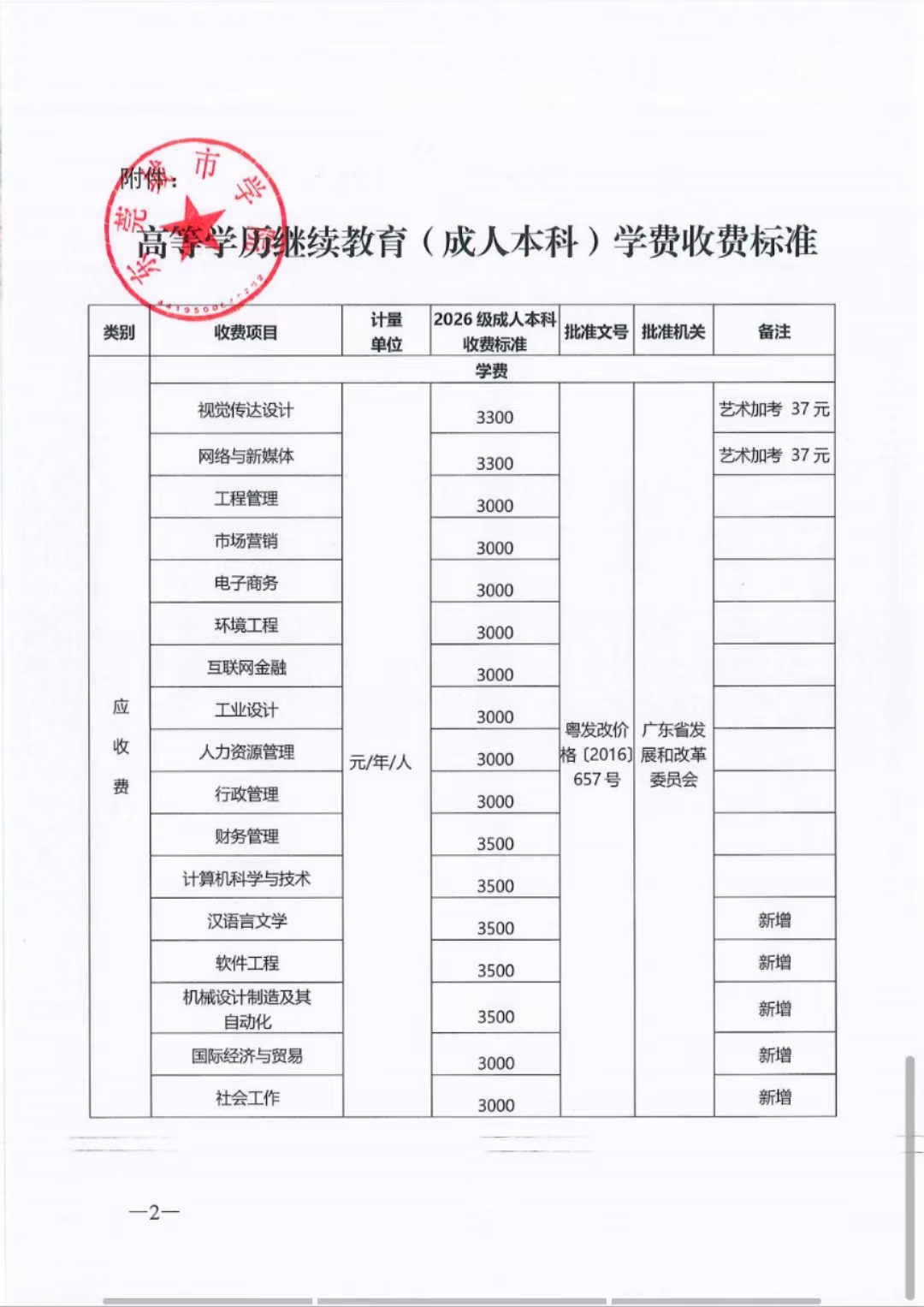 关于2026级高等学历继续教育(成人本科) 学费收费标准的公示