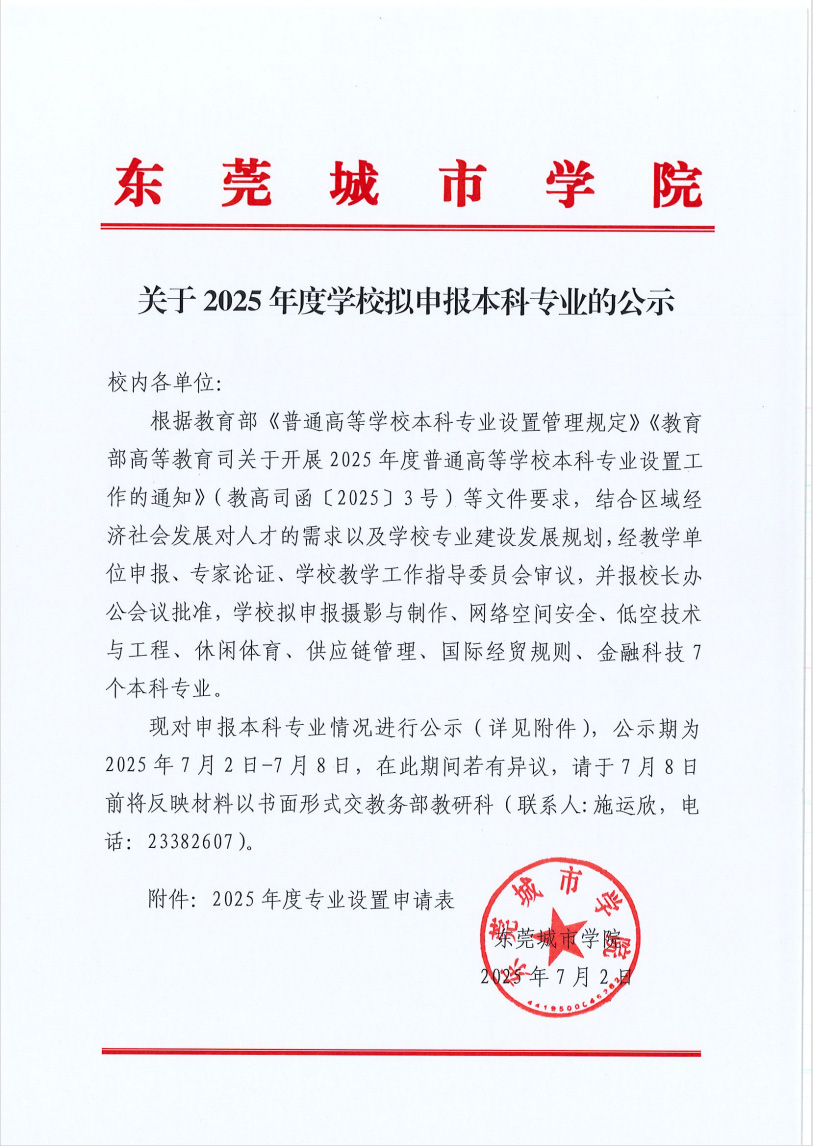 关于2025年度学校拟申报本科专业的公示