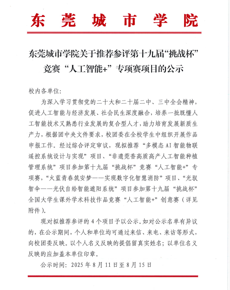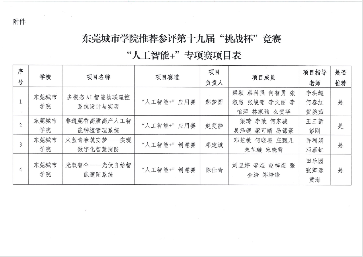 Beat365唯一官方网站关于推荐参评第十九届“挑战杯”竞赛“人工智能+”专项赛项目的公示