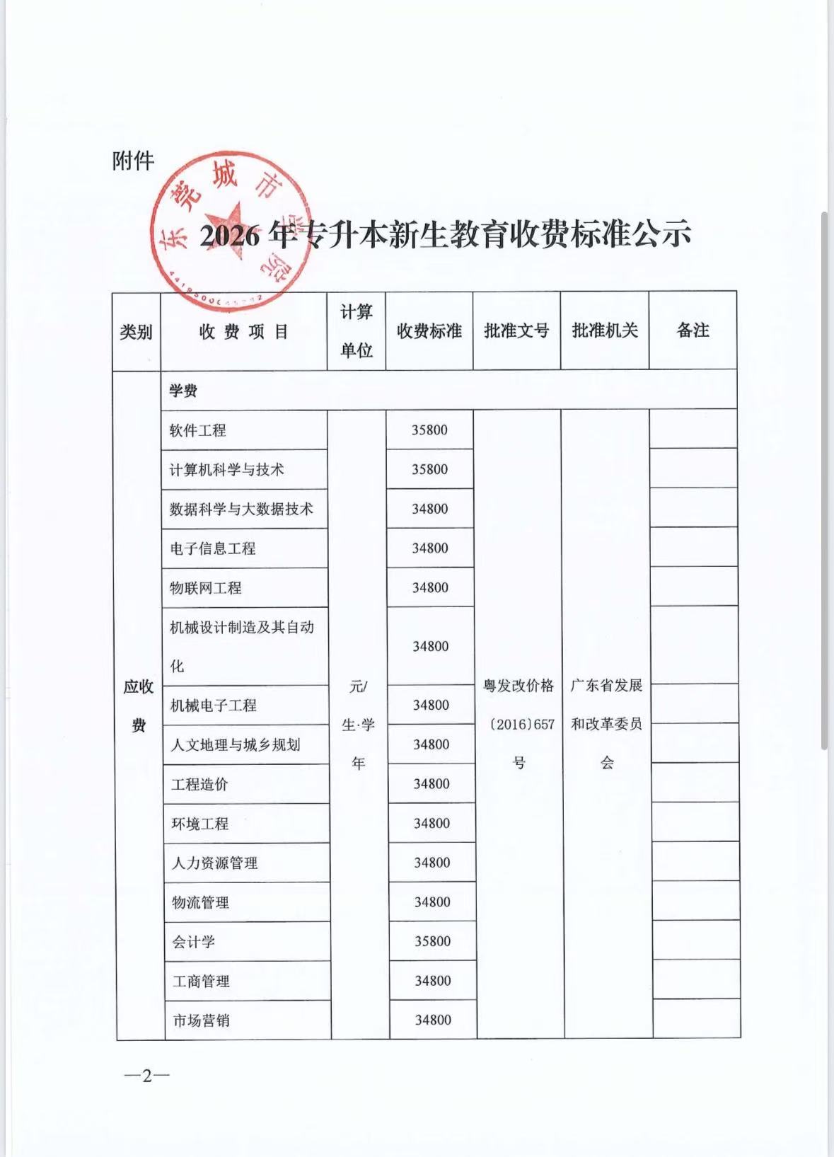 关于2026年专升本新生教育收费标准的公示